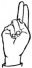 На ћирилици написано БОГОСЛАВА МАРКЧЕВИЋ састоји се из 18 слова [?]. Исписано ћириличном једноручном азбуком за глувонеме: